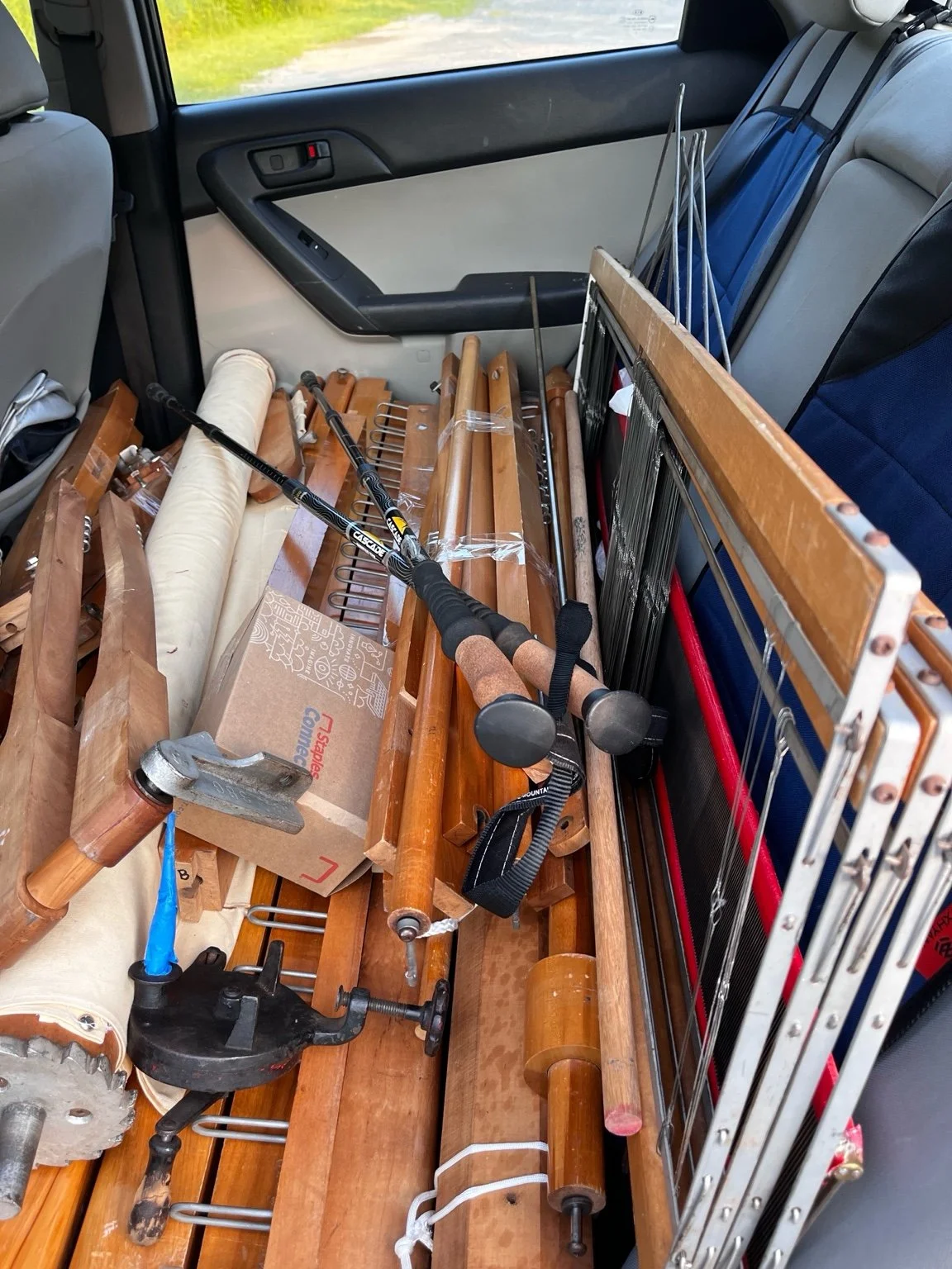 It turns out she studied weaving in school and is as devoted to the fiber arts as I am. We hugged. Then showed her the backseat of my car.
